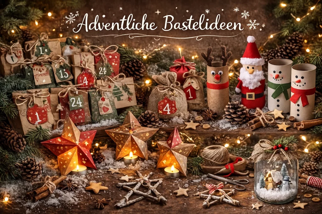 Adventliche Bastelideen   Was wäre der Advent ohne Bas­teln?! In kur­zen Vide­os zei­gen wir Ihnen, wie schnell und ein­fach ein advent­li­cher Kranz, ein Wind­licht, eine Ker­ze, ein Fens­ter­stern uvm. selbst gemacht ist. Las­sen Sie sich für Ihre Fami­li­en-Bas­tel­stu­be Zuhau­se mit vie­len Ideen für Groß und Klein inspirieren.