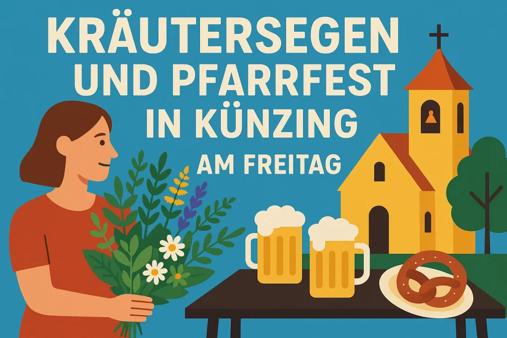 Kräutersegen und Pfarrfest Künzing. Die Kräutersegnung mit anschließendem Pfarrfest im Pfarrgarten Künzing beginnt am Freitag, 15. August, um 10 Uhr. Es werden Kränze und Kräuterbüschel angeboten. Für das leibliche Wohl ist bestens gesorgt.