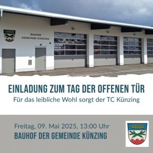 Die Gemeinde Künzing feiert die Einweihung und den Tag der offenen Tür des neu errichteten Bauhofs in Künzing (Am Südvicus 5) am Freitag, 9. Mai.