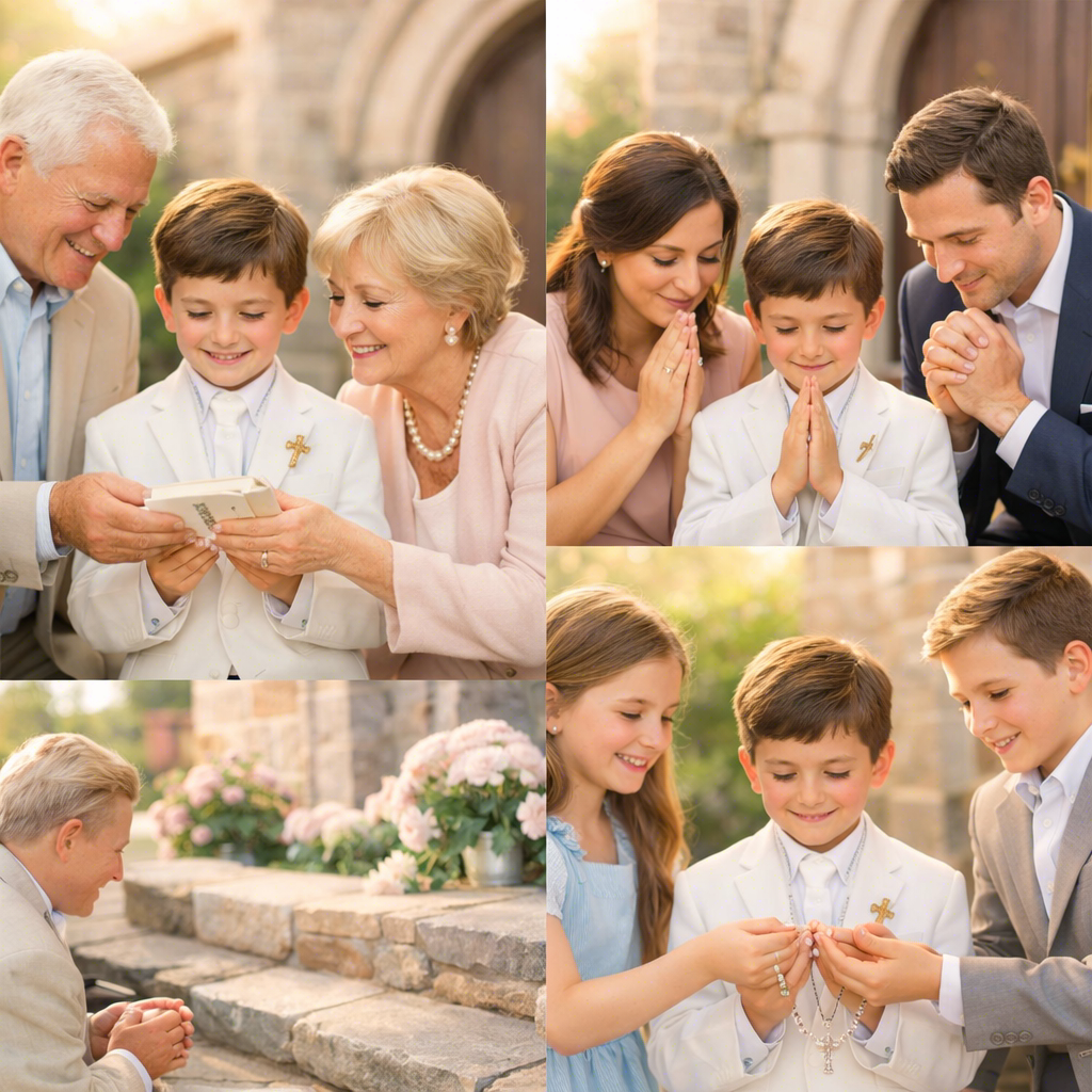 Geschenke sind üblich, zum Beispiel religiöse Symbole (Kreuze, Gebetsbücher), Schmuck oder persönliche Geschenke. Die Familie sorgt dafür, dass der Tag für das Kind unvergesslich wird und die Bedeutung des Sakraments im Alltag weiterlebt.