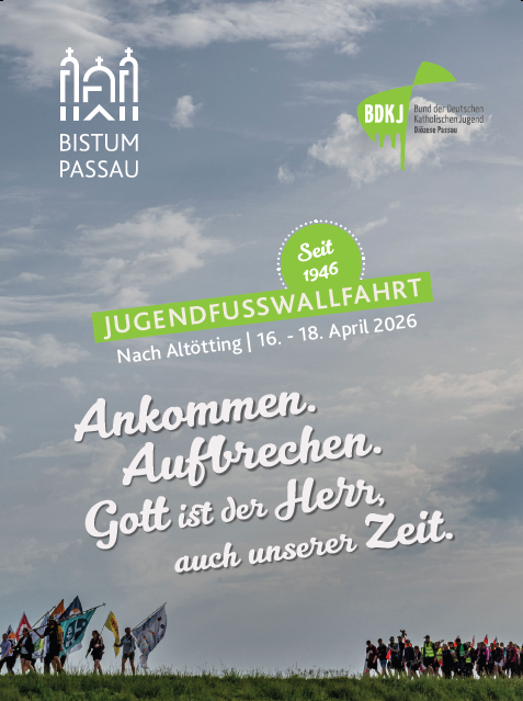 „Ankommen. Aufbrechen. Gott ist der Herr auch unserer Zeit!“ – unter dieses Motto stellen der BDKJ Diözesanverband Passau und das Bischöfliche Jugendamt die Jubiläumswallfahrt. Der Satz greift ein historisches Wort aus dem Bistumsblatt vom 7. Juli 1946 auf, in dem die erste Jugendwallfahrt nach den Schrecken der NS-Zeit bewusst als religiöses und politisches Zeichen angekündigt wurde: „An diesen beiden Tagen muß es sich erweisen, daß wir gründlich mit der Vergangenheit brechen wollen, die alles frohe Ziehen zum Herrn der Kirche verlachte, daß wir wieder in uns aufkommen lassen den Mut zum Bekenntnis, das frohe Tragen von Entbehrungen und die Kraft, einzutreten vor aller Welt für unsere Überzeugung. Wir sind bereit, rufen es weit, Gott ist der Herr auch unserer Zeit!“