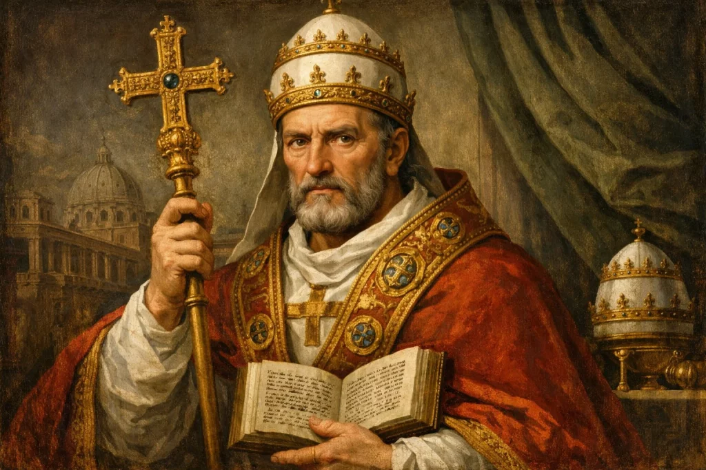 Manchmal bleibt nur die Flucht nach vorn – und Innozenz I. (402–417), der erste „Politiker“ auf dem Stuhl Petri, ergriff sie. Laut seinem Biograf war er der Sohn eines Innozenz von Albano, während sein Zeitgenosse Hieronymus ihn als Sohn seines Vorgänger Anastasius I. bezeichnete. Ein wenig Chaos ist verständlich, schließlich wurde das Pontifikat des Innozenz vom Untergang des Weströmischen Reiches überschattet. 410 belagerte und brandschatzte der Westgotenkönig Alarich I. die einstmals stolze Hauptstadt Rom. Umso selbstbewusster versuchte Innozenz, seine kirchenpolitischen Ambitionen durchzusetzen: Er ergriff vergeblich Partei für den von der Ostkirche abgesetzten Konstantinopeler Patriarchen Johannes Chrysostomus, beanspruchte die oberste Lehrentscheidung in allen wichtigen Fragen und bestätigte ungefragt afrikanische Synodenbeschlüsse. Inmitten des politischen Zerfalls versuchte Innozenz, die Kirche zu zentralisieren und nach römischem Vorbild auszurichten. Er starb am 12. März 417 in Rom.