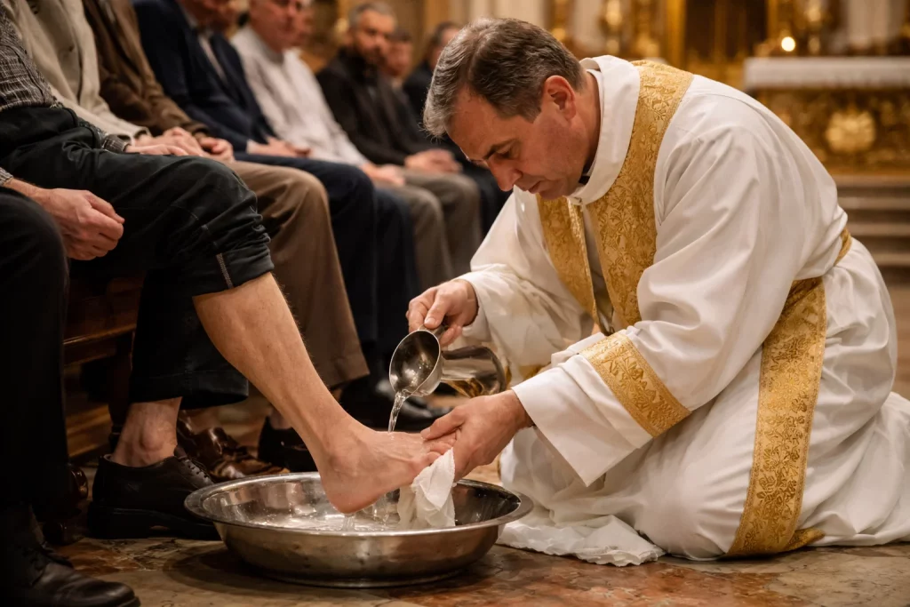Ein Priester bei der traditionellen Fußwaschung am Gründonnerstag.