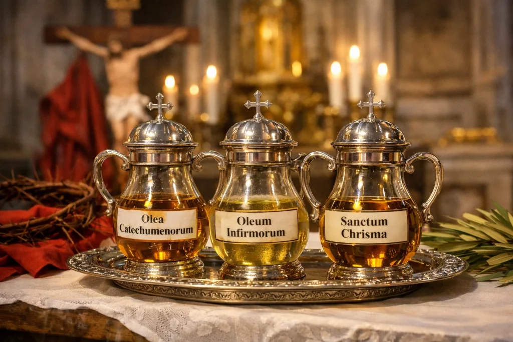 Geweiht werden die Öle bei der Chrisammesse, die traditionell am Morgen des Gründonnerstags stattfindet.