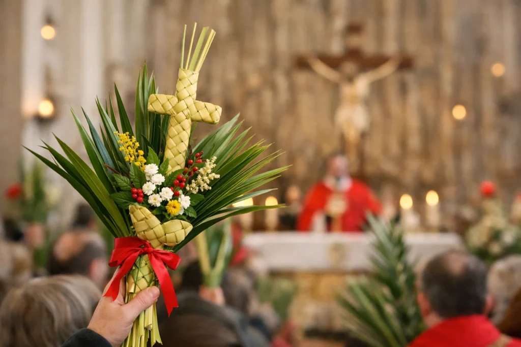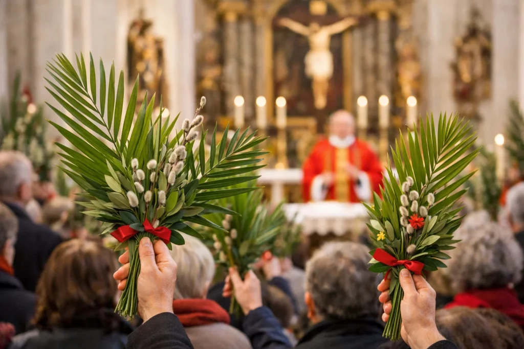 - Brauch: In der Messe werden Palmzweige gesegnet und in Prozessionen getragen. Diese Zweige werden oft zu Kreuzen geflochten und zu Hause aufbewahrt.