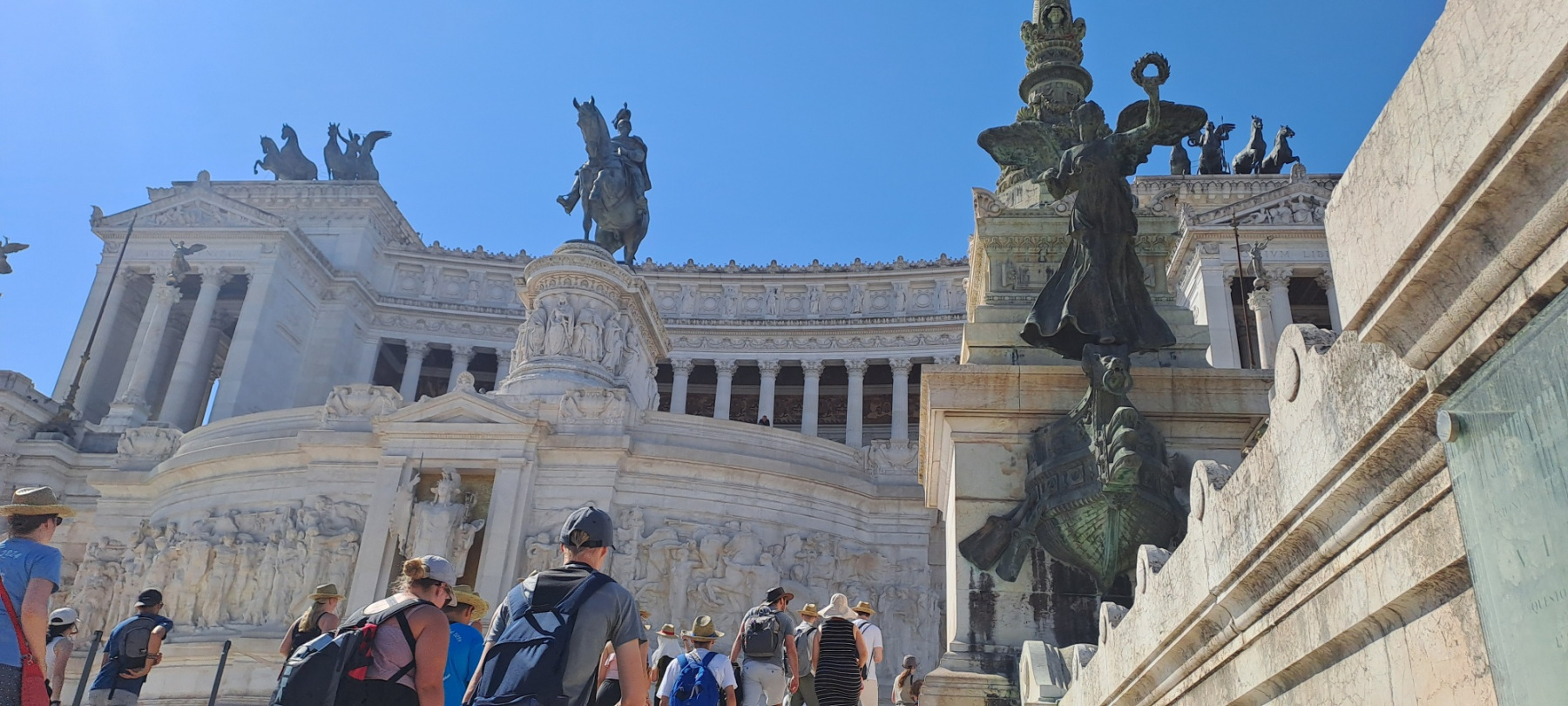 Schon zeitig am Dienstagmorgen starteten die Ministranten und Ministrantinnen mit ihren Begleitpersonen zu einer Besichtigungstour durch das antike Rom mit Forum Romanum, Kapitol, Kirchen Santa Maria in AracoeliI mit dem Babino Gesu, und Santa Stefano in Rotondo. Eine grandiose Aussicht erhielten die Minis von der Plattform am Denkmal Vittorio Emanuele.