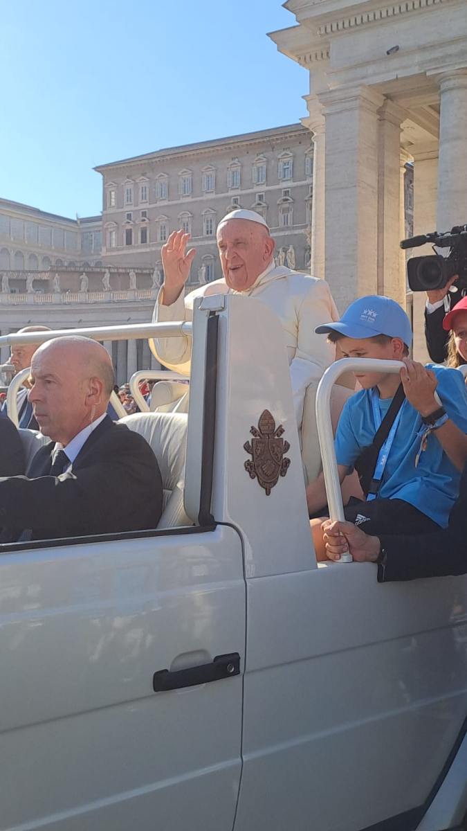 Am frühen Dienstagabend stand die große Sonderaudienz mit Papst Franziskus auf dem riesigen Petersplatz an, wo die Künzinger und Forstharter Ministrantinnen und Ministranten mit ihrem Pfarreibegleiter Xaver Brumm und ca. 1400 Teilnehmern aus dem Bistum Passau (insgesamt ca. 50000) auf die Begegnung mit dem Heiligen Vater warteten.